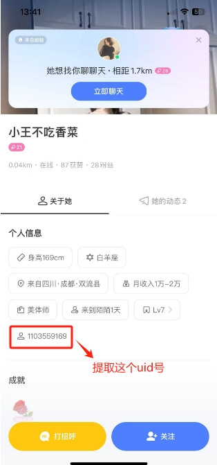 需提供陌陌UID(个人主页-关于她的个人信息中),可查手机号和实名信息,或者手机号查对方陌陌号